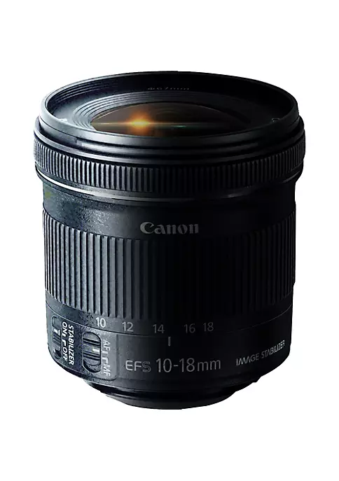 A flexible wide-angle zoom in a compact form factor, the EF-S 10-18mm f/4.5-5.6 IS STM from Canon is a 16-28.8mm equivalent lens designed for EF-S-mount DSLRs. Helping to reduce the overall size while maintaining high optical quality, a four-group zoom design is employed along with one ultra-low dispersion element, one aspherical element, and one large-diameter element to produce sharp, clear imagery void of chromatic and spherical aberrations. A Super Spectra coating has also been applied to suppress flare and ghosting for increased contrast and color neutrality. Benefitting both photo and video applications, an STM stepping AF motor is used to realize quick and near-silent autofocus performance along with full-time manual focus override. Additionally, a four-stop-effective Image Stabilizer system is also featured and minimizes the appearance of camera shake for sharper handheld shooting.