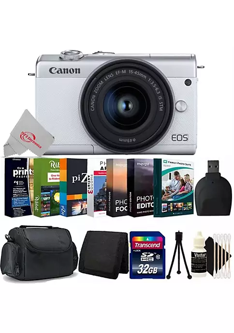 - Canon EOS M200 Mirrorless Digital Camera White with 15-45mm Lens