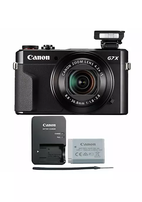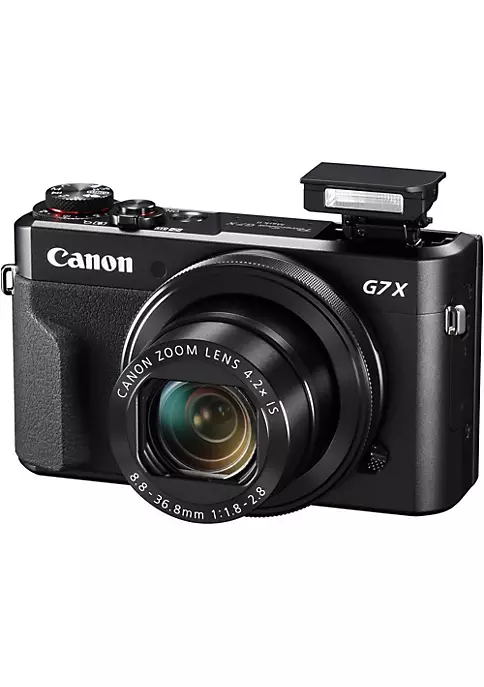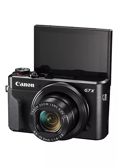 | Blending notable imaging qualities with refined handling, the PowerShot G7 X Mark II Digital Camera from Canon is a compact point-and-shoot characterized by its large feature-set. Utilizing a 20.1MP 1″ CMOS sensor and DIGIC 7 image processor, this camera offers an expanded sensitivity of ISO 25600 and achieves smooth image quality with reduced noise when working in low-light conditions. Additionally, it is also capable of recording stills at up to 8 fps as well as Full HD 1080p60 video. Complementing the sensor and processor combination is a versatile 4.2x zoom lens, which provides a 24-100mm equivalent focal length range, covering wide-angle to short-telephoto perspectives. A fast f/1.8-f/2.8 maximum aperture maintains consistent performance throughout the zoom range and also benefits working in difficult lighting conditions. The lens design is surrounded by a familiar control ring that offers intuitive control over settings, and a large 3.0″ 1.04m-dot tilting touchscreen LCD provides a natural means for composing imagery from a variety of shooting angles. Additionally, the G7 X Mark II also features built-in Wi-Fi with NFC for wireless sharing of imagery to smartphones or tablets, as well as remote camera control from linked mobile devices.